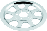 Precision-formed steel insert with eight-hole pattern dresses up rear wheel belt pulley.