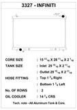 CSF has over 5 decades of experience manufacturing radiators. So when it comes to keeping your engine cool and your G35 running at its best, a CSF High-Performance All-Aluminum Radiator is the obvious choice. Designed to perform on the street or at the track, a performance radiator is a must-have for both high horsepower builds as well as race vehicles which need added cooling performance in motorsports environments. This radiator features a 2-Row core with CSF's exclusive B-Tube Technology: Unlike a regular oval shape "O" type radiator tube, CSF uses a specially engineered tube in the shape of a "B". These "B-tubes" are carefully formed and then brazed over the seam to seal. CSF is able to use thinner and lighter aluminum material (with better cooling efficiency) because this design is actually stronger than normal "O" shape tubes that are welded. The design (inlet in the middle of the tube that is seam brazed) increases the heat transfer surface area of the tubes by approximately 15% over regular tubes - producing the efficiency of two smaller tubes vs. one large tube within the same space criteria. With "B-tubes" you are able to get "dual liquid laminar flow". CSF also uses ultra efficient multi louvered fins that are carefully and precisely aligned to maximize airflow through each radiator core. Fin specifications are carefully measured and calculated for each application, and tested for maximum heat rejection efficiency in our wind-tunnel lab.