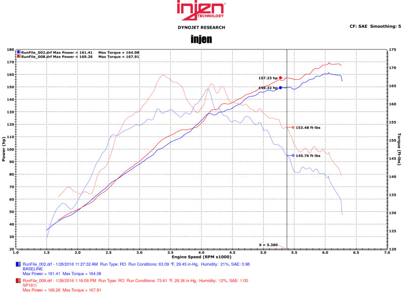 Is your engine choking for air and in need of some additional horsepower? If so, Injen has exciting news for you! The SP series of cold air intakes from Injen Technology will allow your engine to breathe deeper and enhance the performance that you've been craving. The SP series of cold air intakes is Injen's flagship system in their lines of traditional aluminum cold air intake systems. Injen Technology is the world's first tuned air intake system and holds four (4) patents on the tuning process of an intake system ? something no other manufacturer can claim. The SP series of cold air intakes feature many of Injen Technology's patented tuning process, including MegaRam (MR) Technology (Patents 7,359,795 and 7,669,571), Air Fusion (Patents 7,757,548 and 7,721,699), and many other innovations that keep Injen Technology at the forefront in the performance aftermarket. , , The soul of this intake is found within 6061-T6 aluminum air intake tube that provides a smooth uninterrupted path for highly efficient airflow. Our engineers have painstakingly designed the intake to provide the highest levels of safe power, along with clean aesthetics that will impress every time you open your hood. In addition to the impressive power increase, the Injen team has ensured that a safe Air fuel (A/F) ratio has been maintained throughout the power band. , , Additionally, this SP intake includes a fully serviceable Injen SuperNano-Web dry air filter, which provides increased filter surface area allowing for greater airflow and unbeatable filtration. If that's not enough, the Injen SP performance intake provides power you can hear and feel! This intake provides an aggressive and throaty tone that is unmatched in the aftermarket. Want to add that personalized touch to your intake? You're in luck, as Injen also offers this intake system in multiple finishes. To top it all off, this SP CAI kit includes the unbeatable Injen Technology limited Lifetime Warranty!