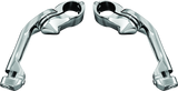 These cruise mounts with positive locking Quick Clamps offer an incredible range of adjustability. The entire assembly may be moved up or down on the engine guard. The arm and footpeg may be further adjusted along a vertical or horizontal arc. A unique clevis permits angle adjustment of the footpeg. The heavy-duty Quick Clamp and sturdy offset arm ensures that the footpegs will clear fairing lowers and will stay where you put them.